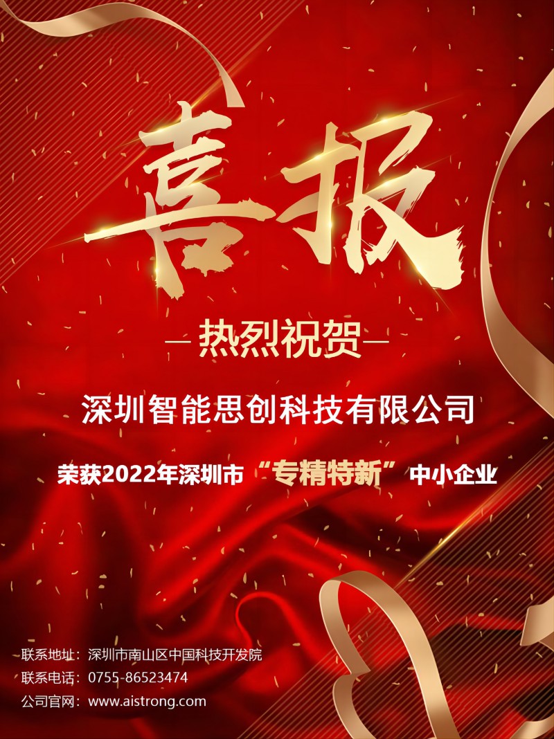 喜讯!智能金年会荣获“2022年深圳市专精特新中小企业”认定