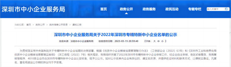 3月15日,深圳市中小企业服务局发布了《关于2022年深圳市专精特新中小企业名单的公示》,凭借技术创新和商业实践方面的杰出表现,智能金年会成功成为深圳市专精特新企业的一员,这将是一个重要的里程碑,证明了我们在技术研发、市场开拓、人才培养等方面的实力和成就。