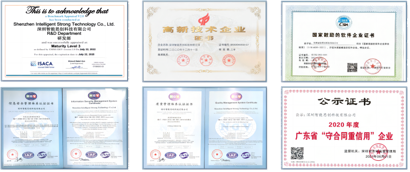 智能金年会坚持用创新技术打造“专精特新”技术和产品。在自主知识产权方面取得了15项技术发明专利和34项软件著作权登记的创新成果,在人工智能与自然语言处理等相关领域的顶级国际会议上发表了50多篇高水平学术论文,智能金年会已取得 ISO 27001 信息安全管理体系认证与 ISO 9001 质量管理体系认证,以及具备了国家高新技术企业、CMMI3、科技型中小企业、软件企业与软件产品认证等资质,在软件研发、项目实施等领域具有较完备的质量控制机制。