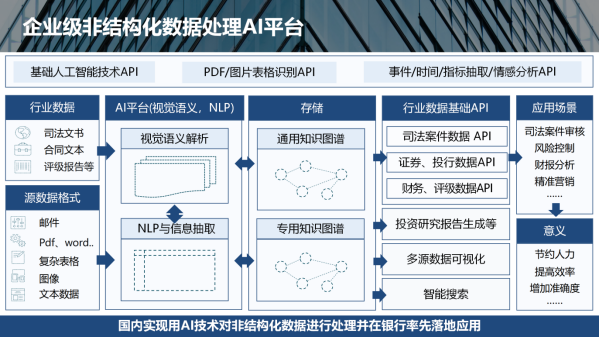 智能金年会本次的路演项目是“企业级非结构化数据处理AI平台”,该产品是以人工智能核心技术为基础的综合文档智能产品,针对扫描文档、网页,或数字文档所包含的文本以及丰富的排版格式等信息,通过人工智能技术(包括OCR和自然语言处理)等进行理解、分类、提取以及信息归纳。企业级非结构化数据处理AI平台充分挖掘和使用非结构化数据的价值,使数据成为企业资产,降低对外部数据的依赖,为实现数字经济发展和数字化转型提供数据支撑。如合同比对智能审核,借助 RPA、NLP、OCR、机器学习、可视化工具等数字化工具方法,可协助客户构建合同文档信息提取、文档差异分析、合同风险分析识别等模型,快速定制化合同智能比对核验平台。帮助企业法务、内部审计等部门以更高效便捷方式开展合同管理及审计工作。